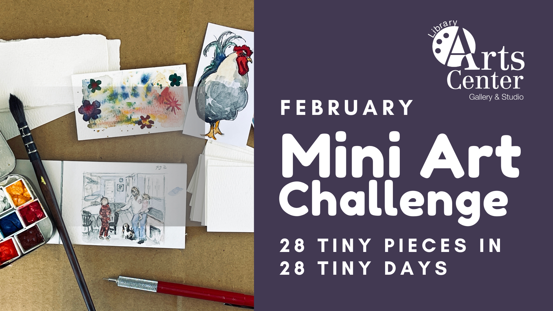 In February 2026, join the Library Arts Center for a month of tiny, joyful art making. Participants of all ages and abilities, from kids to professional artists, are encouraged to join in this art challenge to create a tiny art piece each day of the shortest month of the year. No pressure, no perfection: just a daily practice of showing up, playing with color, and letting small works lead to big growth.